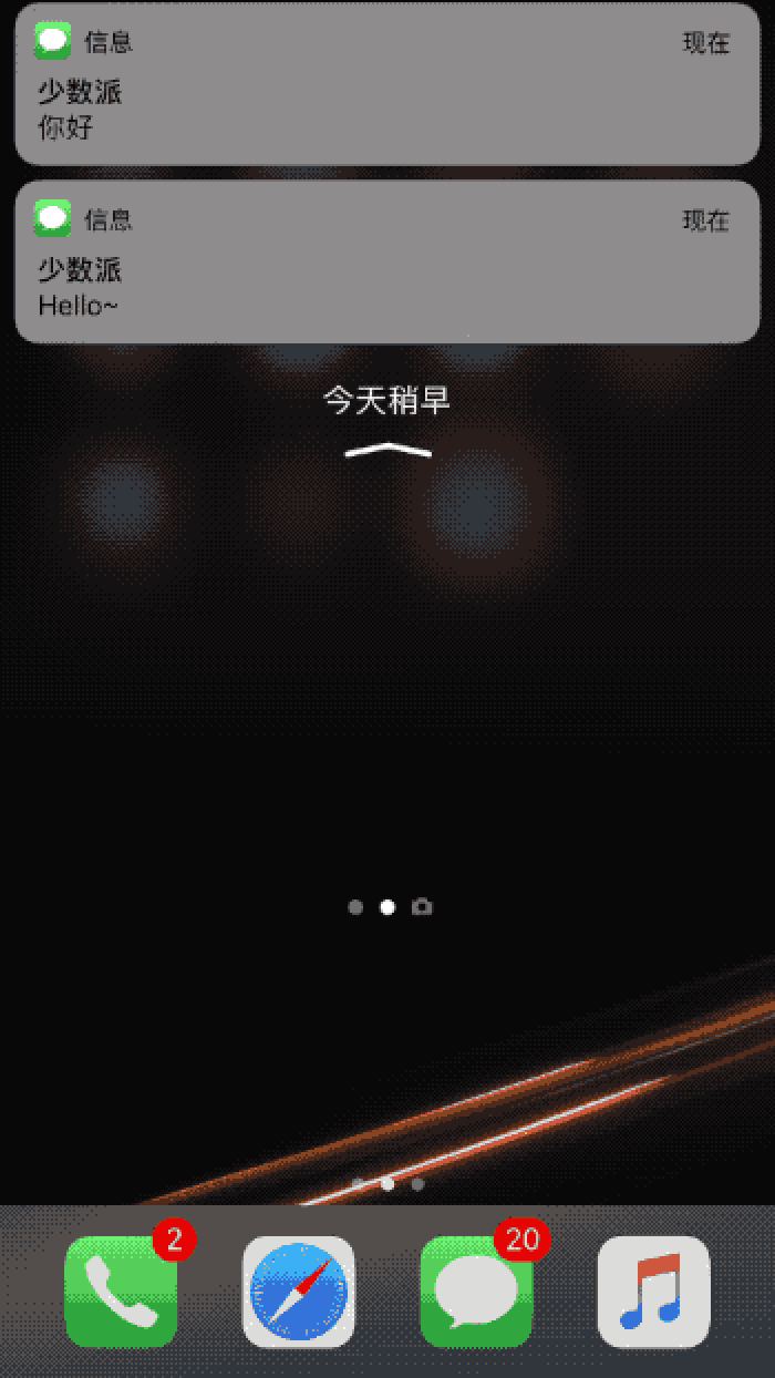 你再也不需要担心 Touch ID 解锁太快看不到锁屏通知了,你只需要从屏幕顶部往下滑,就会重新显示锁屏通知。当你再次从屏幕中间往上拉,才会显示原来的通知中心消息。
