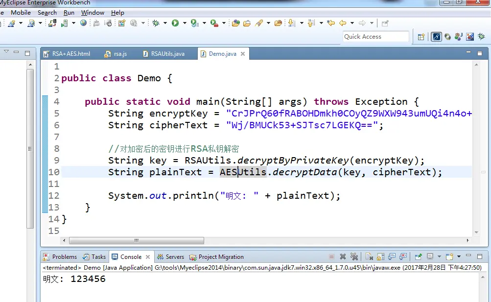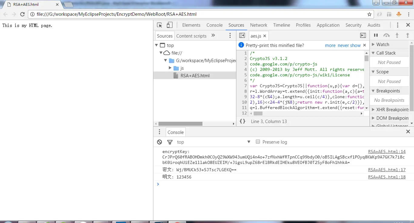 同时还有相应的JS版RSA和AES算法,使用方式也差不多,在这里简单演示一下: