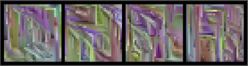 PixelCNN生成样本的时间过长,这让我很沮丧。于是,我就想试试能不能用一个预训练的PixelCNN训练出前馈式图像对图像卷积神经网络(8x8至32x32尺寸的LSUN卧室图片集)。我所设置的训练方法是:在前馈式网络的输出上进行自动回归。在PixelCNN下更新权重以便将概率最大化。它用这样的线条生成了非常奇怪的图像: