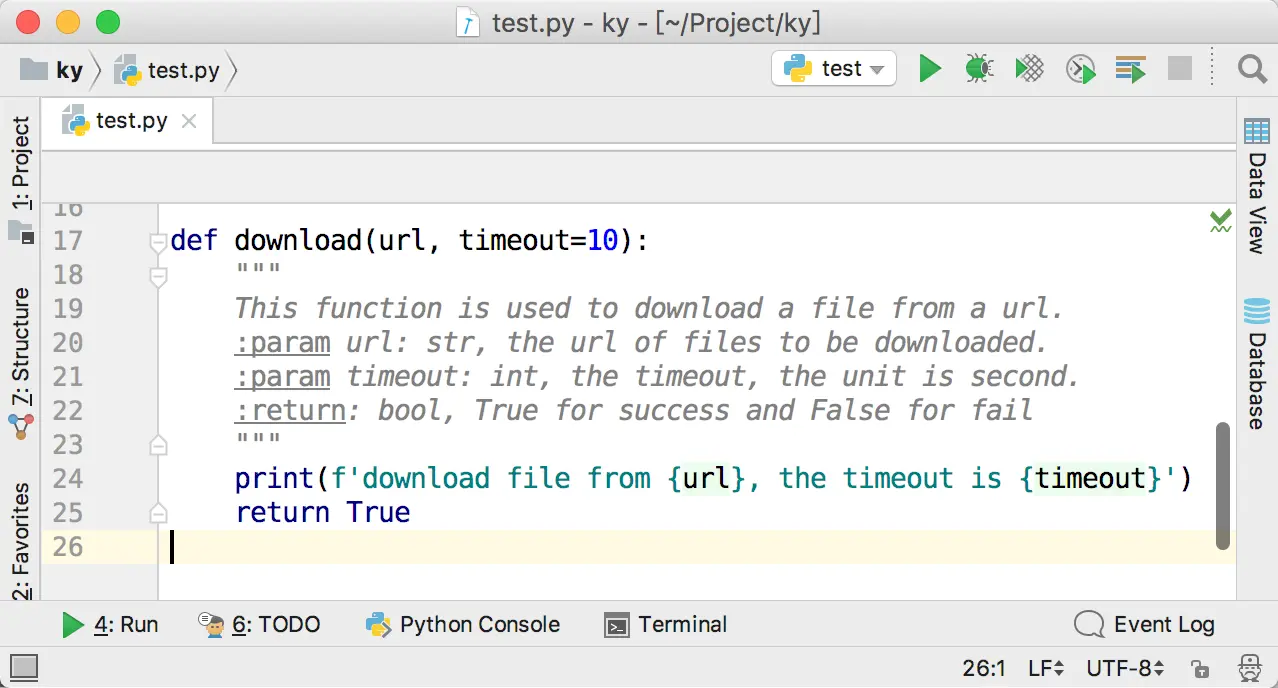PyCharm现在已经可以比较好地支持Type Hints了。例如下面这一段代码:
