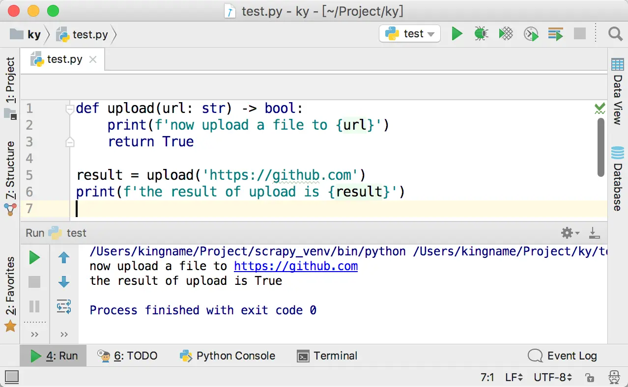 return True模拟一段上传文件的函数,上传成功以后返回True。接收一个参数url。在正常情况下,这个url应该是一个字符串。于是,使用Type Hints,代码可以变为: