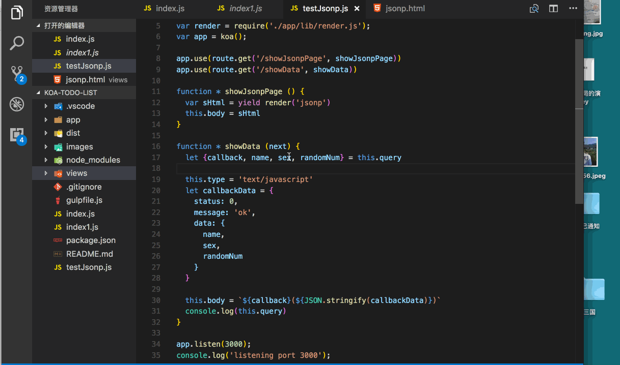 找到根目录的testJsonp.js文件即是服务端主要代码