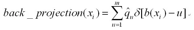 其中,b(xi)表示在位置xi上像素对应的直方图第b(xi)个bin,直方图共m个bin,qu表示第u个bin的值。