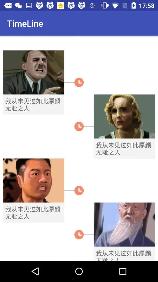 用StaggerGridLayoutManager实现了类似瀑布流的效果,然后在ItemDecoration中画出分割线的效果。 在ItemDecoration中分别画了横线、竖线、还有时间的图标这三个来实现时间轴的效果。