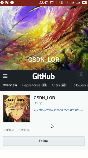 CollapsingToolbarLayout对Toolbar的“增强”就是把Toolbar变成可折叠的,使其具有更多的交互花样(其实也就是更多的交互动画),我们先来看看可以实现的效果: