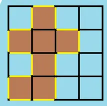 样例输入的岛屿的周长为16,如图中黄线所示。