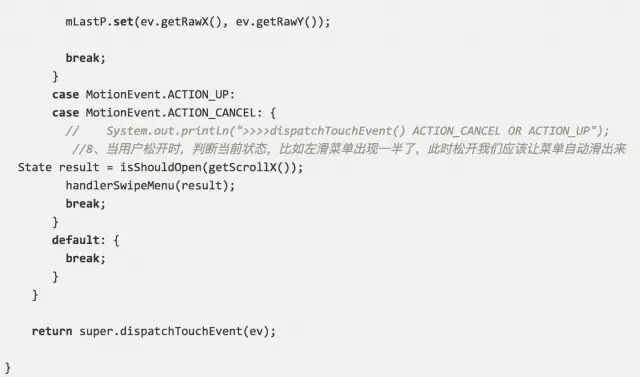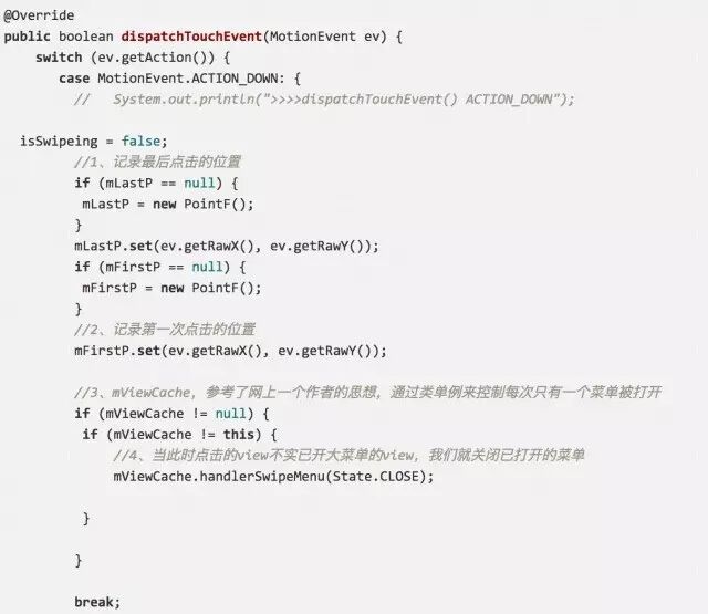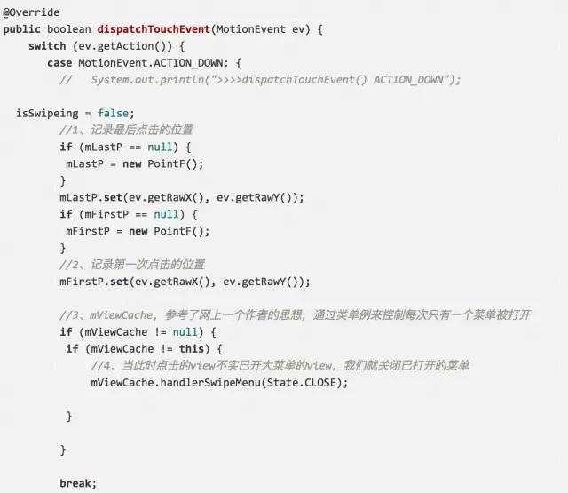 比如,假如你在recyclerView中使用,那么当你侧滑出菜单的时候,肯定不希望他出发recyclerView的滚动事件,这时我们可以通过重写onInterceptTouchEvent方法处理