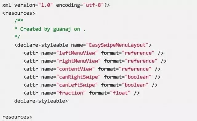 Ok,既然要通过id来配置,那么就会用到自定义控件属性的知识,其实很简单,就是在res/values下创建一个attrs.xml文件,在里面以你喜欢的名字定义属性即可