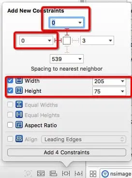 最上线显示 Logo的地方大小为 205x75。我们采用 NSImageView。我们采用如下的布局。