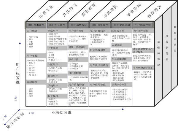 用户画像承载了两个业务目标:一是如何准确的了解现有用户;二是如何在茫茫人海中通过广告营销获取类似画像特征的新用户。比如在了解用户的基础上明确产品定位,“投其所好”;获取一个新用户/新订单;售前的精准营销、售中的个性化推荐匹配,以及售后的增值服务等。