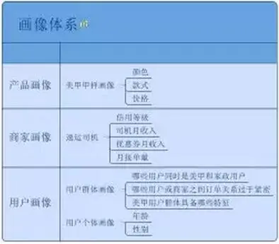 标签体系也叫群体画像,群体画像与个体画像两者都是对人的描述,但群体画像归纳的是人群所呈现出的共性,而非多样性特征。比如想得到美甲用户群体的画像,就需要用一定的方法寻找他们的共性,除了统计手段可实现外,更简单的办法是把这些个体的年龄\性别\职业\收入等标签作为数据挖掘聚类算法的输入, 聚成较少的几类比如2类或3类,如果某个类别的用户所占比例较高,那么这个类别的群体特征就代表了整个群体的画像,画像标签可能是:女性\年龄25-30岁\自由职业\收入万元以上。