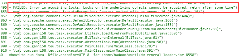 使用load data将数据导入hive中,hive的表按 dt,hour,domain进行明确分区,因此,是否有锁对数据的一致性影响不大,反而有了锁之后,job之间就会有锁竞争的问题(报错信息:conflicting lock present for table mode EXCLUSIVE)。