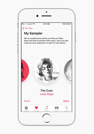 我已经明白了,通过游戏化的体验,用户能够很快的与发现音乐建立联系。另外,私人定制可以为苹果音乐提供关于听众喜好的信息,从而aPP和它的用户一起成长和发展。