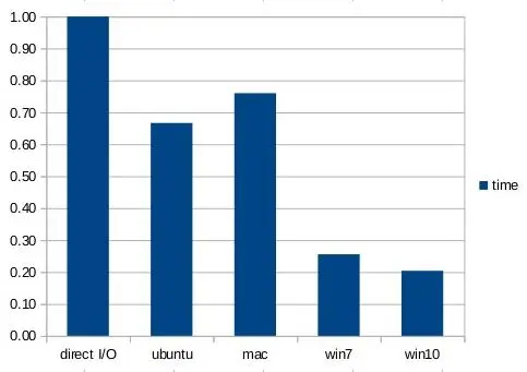 I/O performance varies widely depending on operating system and hardware. Make your own measurements before drawing conclusions.