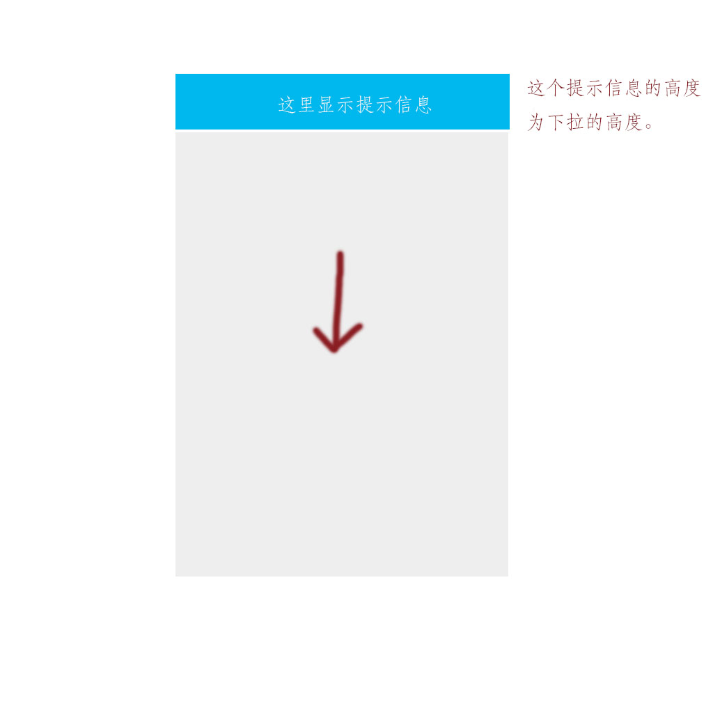 顶部信息的显示采取�固定在Container的顶部,通过下拉的距离控制顶部信息的显示高度,从而达到下拉时显示提示信息的效果。