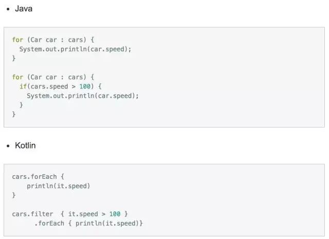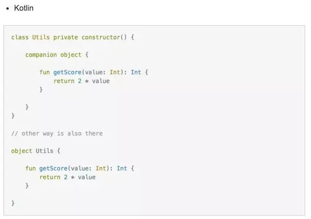 Kotlin一度成为上月的一个热点。AndroidStudio 3.0上官方直接得到了支持。现在的我并没有那么多时间投入到新的语法学习中。但丝毫不能赶走我对他的热情。因为对照最近一年我在写的ES6(ECMAScript 6 JavaScript 2015年的语法糖)感觉Kotlin这是给android程序员的一种福利。在这之前,当我试图开始用ES6到工作中后,发现java的语法确实有些保守和老旧了。那么现在你可以不用担心了。Kotlin的到来,将是下一个春天,因它并不是很难。语法够简洁明朗。吸收了多数优秀新语言的特性。使得你只需要花小成本的投入即可获得高效的编码效率。这无非是一件特别棒的事情。 如果你是一名android开发者,又不想立刻投入到新的语言中来,不妨看看这篇文章对两门语言的一个写法对比。相信你会喜欢的。