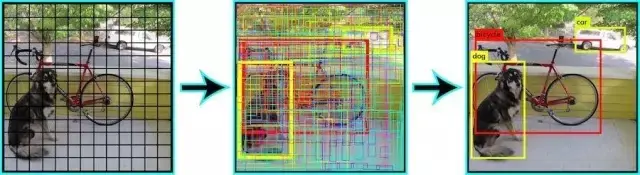 目标框确定后,方格细胞便据此来预测目标的分类。以PASCAL VOC图像数据集为例,YOLOh很轻松就能辨别出20种不同的目标:自行车、船、汽车、猫、狗、人……