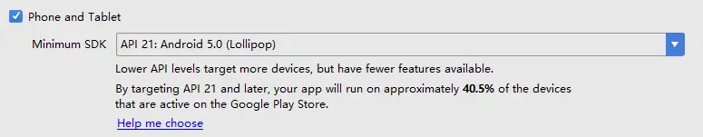 - 需要API21或以上,也就是Android5.0以上,根据从AndroidStudio2.3.2获得的数据,目前Android5.0以上的手机和平板占比是40.5%(不知道准不准,有没有考虑中国国情)。