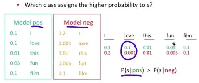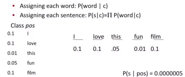 栗子:单词 love 在 positive 的情况下出现的概率是 0.1,在 negative 的情况下出现的概率是 0.001