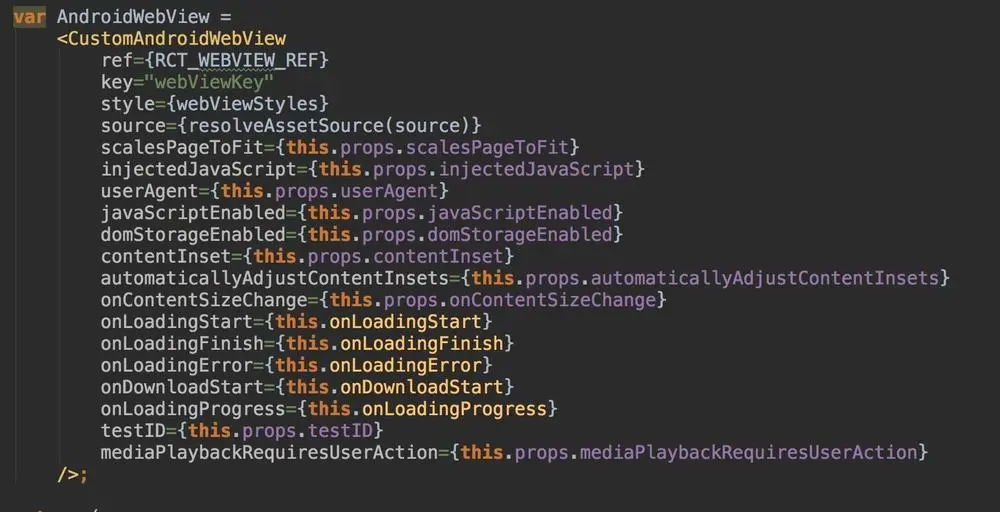 最终在原生端配置结束后,js端配置完对应逻辑,通过 module.exports = WebView 导出组件使用。