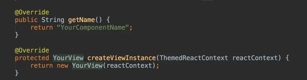 首先我们需要实现一个XXXGroupManager,继承于ViewGroupManager。其中最主要的便是重载实现getName和creatViewInstance两个方法。