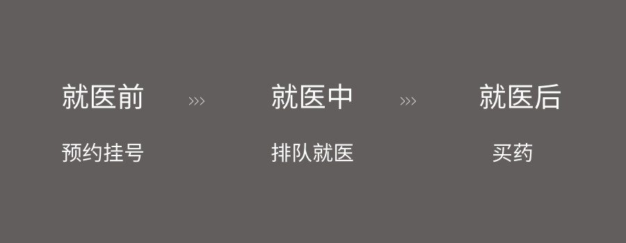 举个例子,当我们分析整个看病就医的流程,就可以将整个场景分为“前中后”三个阶段,如下图: