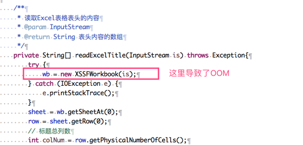 起因说了,WMS系统,需要定期更新从SAP系统导入BOM表数据Excel文件,数据比较多,共4万多条,2.7M。服务器是1核1G内存,后台是java,用的POI处理Excel(xlsx),只要用户一选文件导入就OutOfMemory(内存溢出)。