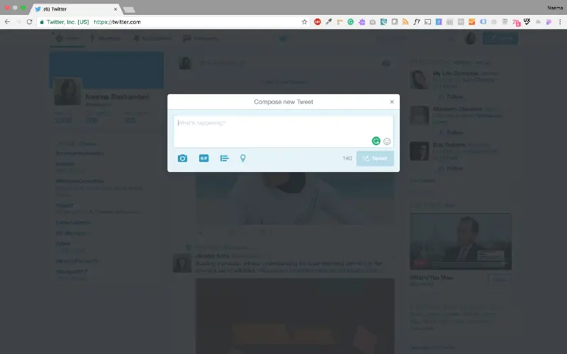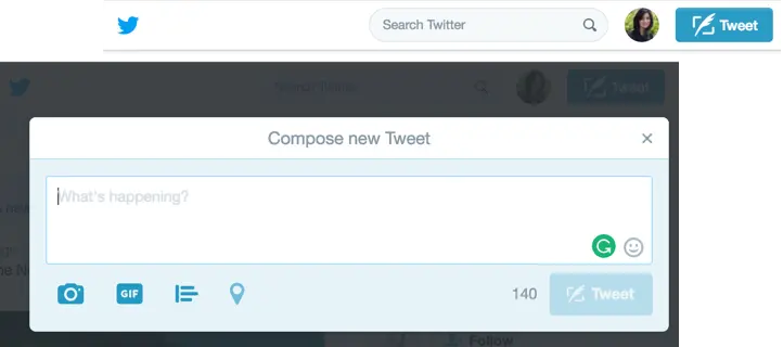 点击“Tweet”按钮——弹窗标题:创建新推特。给出信息。