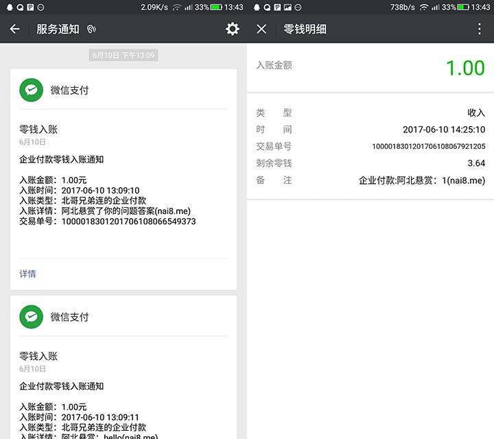- 钱最后进入了会员的微信零钱包。