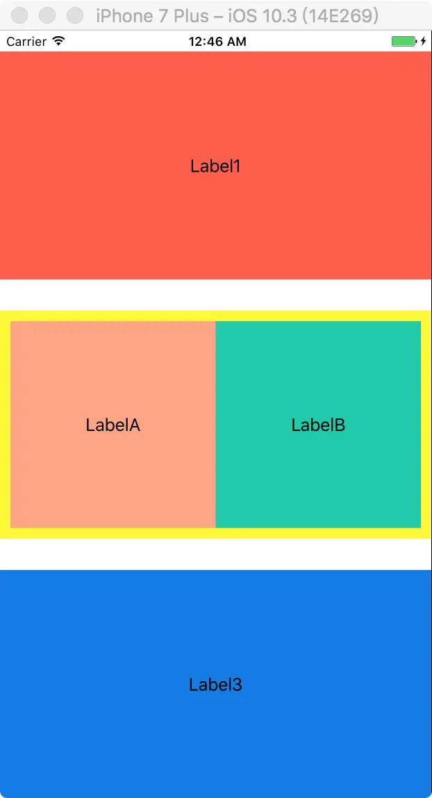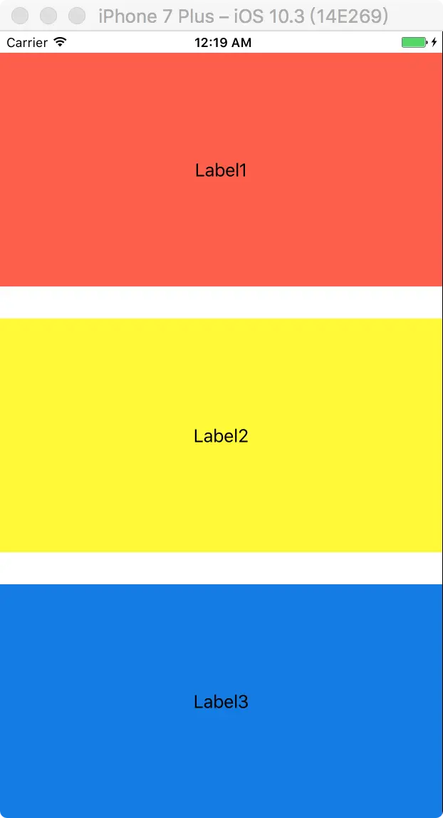 上面的中我们可以看出,我们并不需要为子视图设置任何附加的约束,我们也没有为子视图设置扩展属性。我们只是按顺序添加上去。下面的图片就是实际的运行的结果: