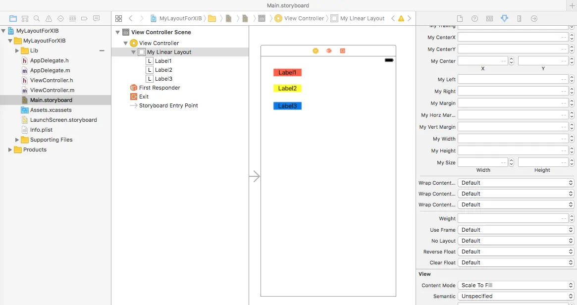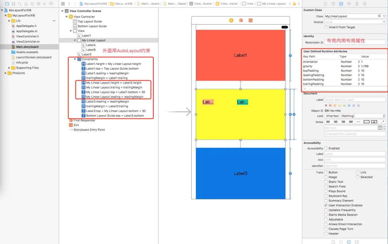 上面的例子介绍的是在不使用AutoLayout时如何将MyLayout和XIB以及SB结合的场景,那么如果我们使用AutoLayout并且想用到MyLayout的布局视图类怎么办呢?答案很简单: