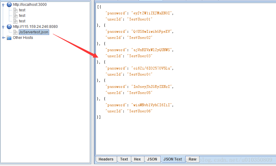 mock修改成本地的 数据 ,区别在于修改了本地字段 password 为:JsServerData