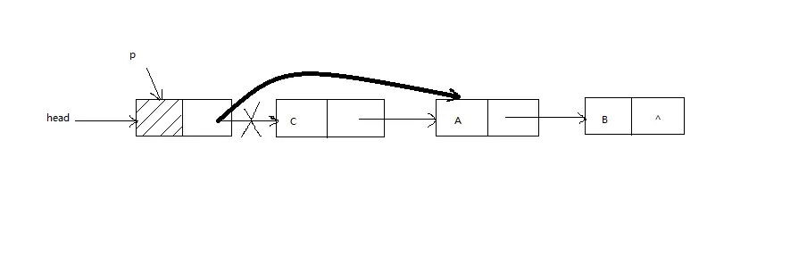 (c) 头删除,不改变head,不用区分删除位置,删除元素c如下图所示
