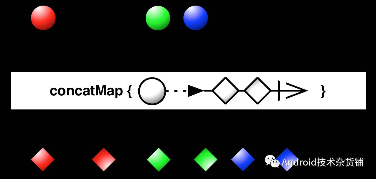 contactMap操作符的功能和 flatMap是非常相似的,只是有一点,contactMap 最终输出的数据序列和原数据序列是一致,它是按顺序链接Observables,而不是合并(flatMap用的是合并)。