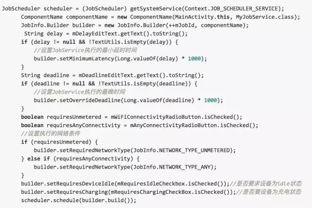 注意:jobScheduler无法兼容Android 5.0以下的设备,可以参考下面的项目,在低版本中也可以使用。