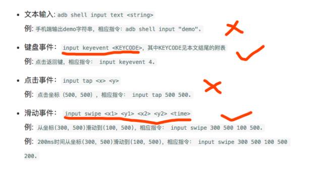 没有root权限的情况下在屏幕上操作,实测可被执行的命令只有swipe和部分keyevent可以生效,其余的可以通过adb的方式调用成功。但是一但在应用内通过shell是不可以的。这确保了android手机的安全。