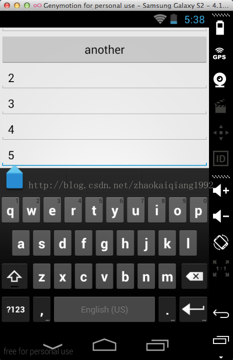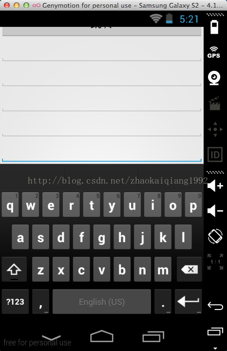 注意观察这个上面的标题栏和按钮,设置为adjustResize属性之后,对于没有滑动控件的布局,虽然还是不能选择所有的输入框,但是,窗口的显示方式发生了变化,默认属性时,整个布局是被顶上去了,但是设置为adjustResize属性,布局的位置并没有发生什么变化,这就是最大的区别。