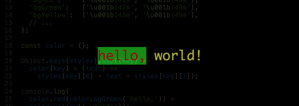 了解了 ANSI 编码中关于颜色部分的知识之后,在 Node.js 中实现一个颜色模块就很简单了。