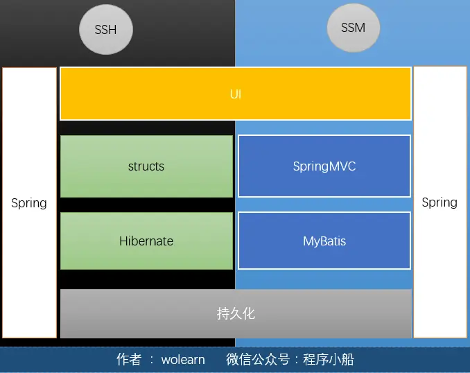 - SSH:Structs(控制层),hibernate(ORM),Spring