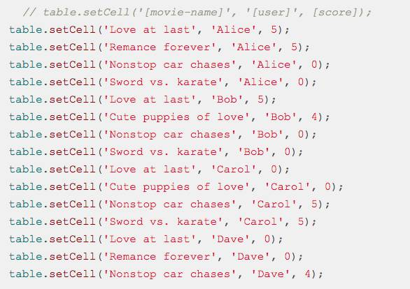 var Model = Recommender.buildModel(inputMatrix, rowLabels, colLabels);