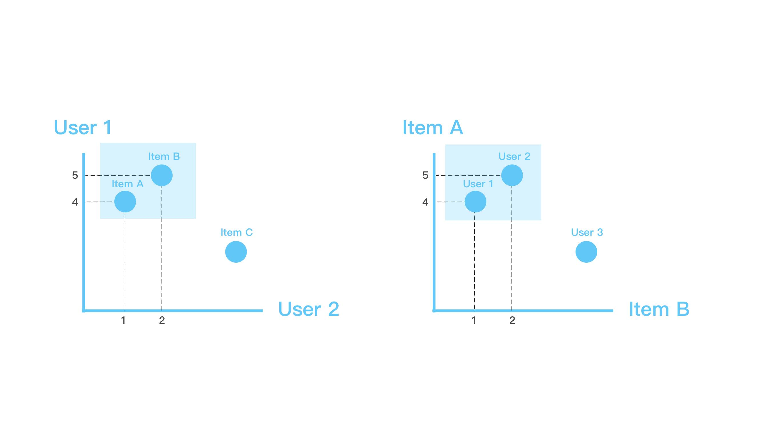 如上图,可以在二维空间里体会下,分别基于User和Item的差异。