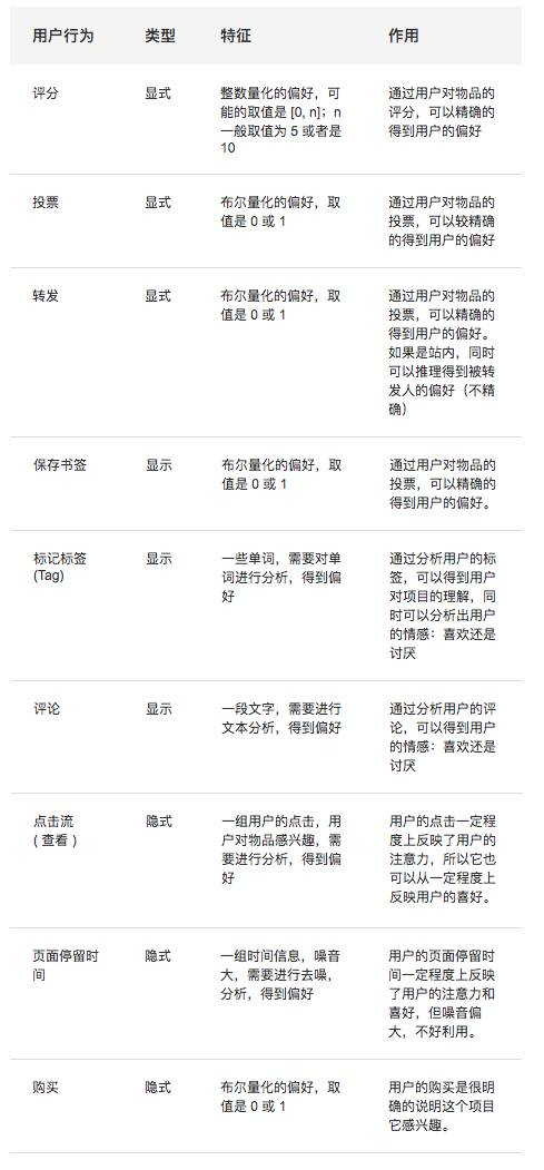要从用户的行为和偏好中发现规律,并基于此给予推荐,则需要收集用户的偏好信息,这是一个推荐系统效果最基础的决定因素。