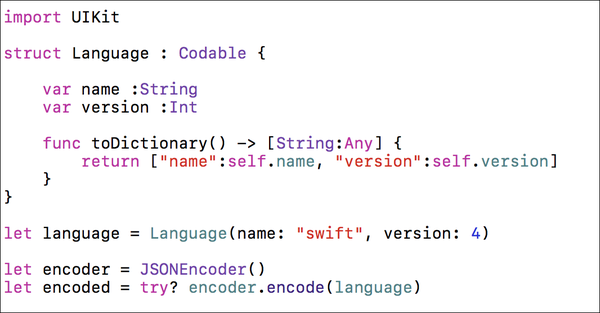 简评:Swift 4 研究了吗?Swift 给我们带来了 Codable 协议,让对象转 JSON Data 变得如此的简单有许多不同的场景,您希望将您的 Class 换为数据。 一个非常常见的需求是 HTTP POST 请求的时候 JSON 数据作为 HTTP Body。 最常见的方法之一如下所示: