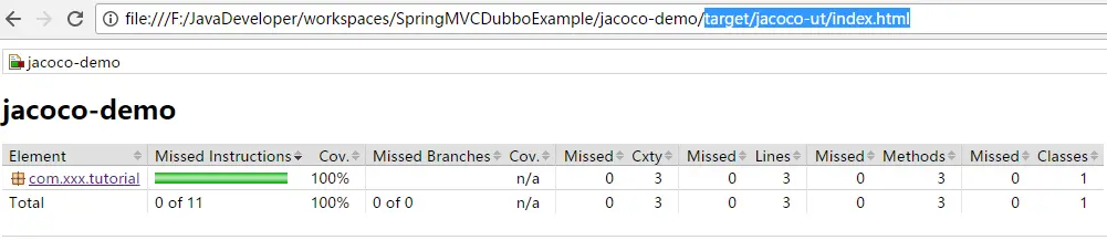 [INFO] Analyzed bundle 'jacoco-demo' with 1 classes