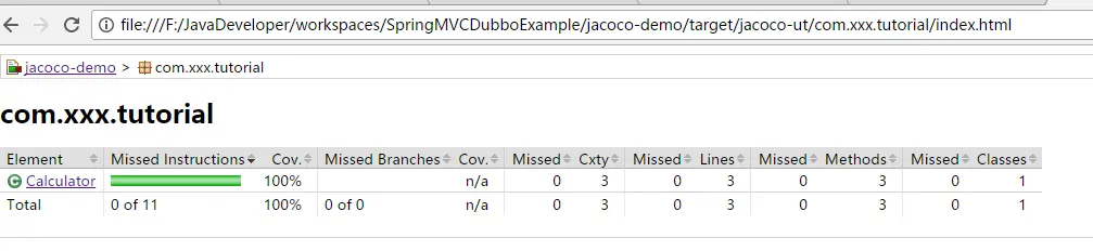 打开浏览器,在URL栏输入<工程地址>/target/jacoco-ut/index.html,如: