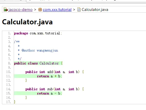 再点击任何方法的连接,将会出现该类代码覆盖的情况: