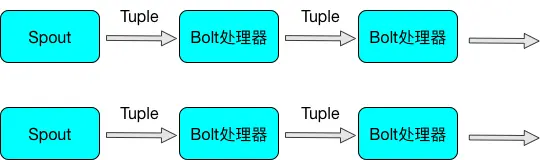 根据Storm的编程模型,实现这个数据处理需求需要建立1个数据源Spout组件,2个业务逻辑组件Bolt,以及一个Topology结构,将这3个组件加入到这个topology结构中。 Spout用于产生数据或者从外部接收数据,它相当于数据源;Bolt用于消费从Spout发送出来的数据流并实现用户自定义的数据处理逻辑;对于复杂的数据处理,可以定义多个连续的Bolt去协同处理。tuples是Storm的数据模型,由值和其所对应的field所组成。