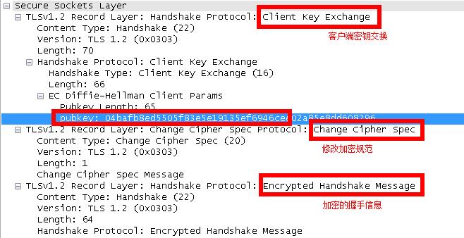 密钥交换用到的服务器方的信息,一般是补充 上次的 [Certificate]指令的信息,一般是给client一个公钥或者临时公钥,用于client来传输premaster key。
