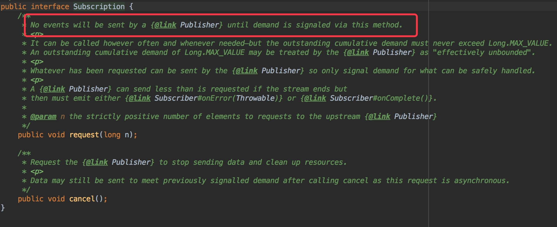 //3, 必须要调用Subscription 的request来请求发射数据,不然上游是不会发射数据的。