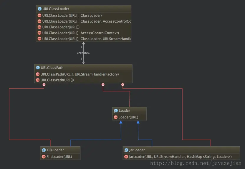 }比较简单,主要是在获取字节码流时的区别,从网络直接获取到字节流再转车字节数组然后利用defineClass方法创建class对象,如果继承URLClassLoader类则和前面文件路径的实现是类似的,无需担心路径是filePath还是Url,因为URLClassLoader内的URLClassPath对象会根据传递过来的URL数组中的路径判断是文件还是jar包,然后根据不同的路径创建FileLoader或者JarLoader或默认类Loader去读取对于的路径或者url下的class文件。